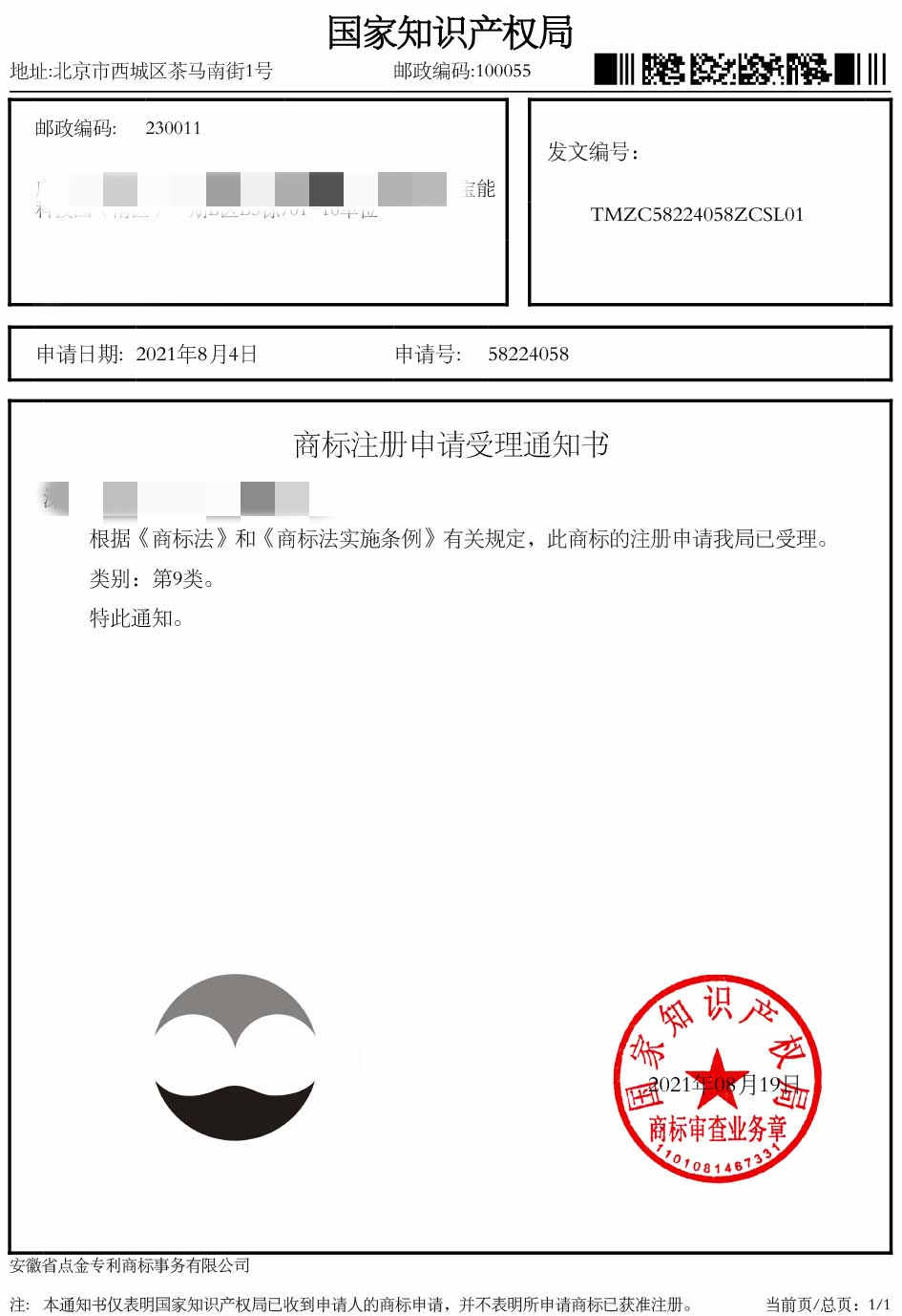 第9类“图形”商标受理通知书