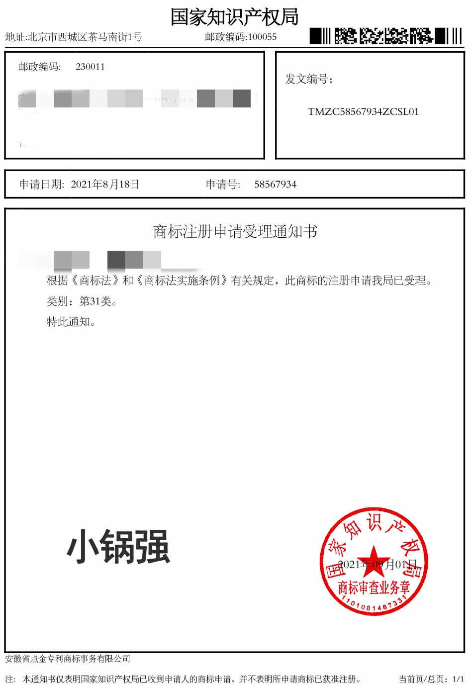 第30类“空魅”商标受理通知书第29类“摩尔庄园”商标受理通...第44类“郑元元”商标受理通知...第35类“路基亚”商标受理通知...第29类“网上儿童乐园”商标受...