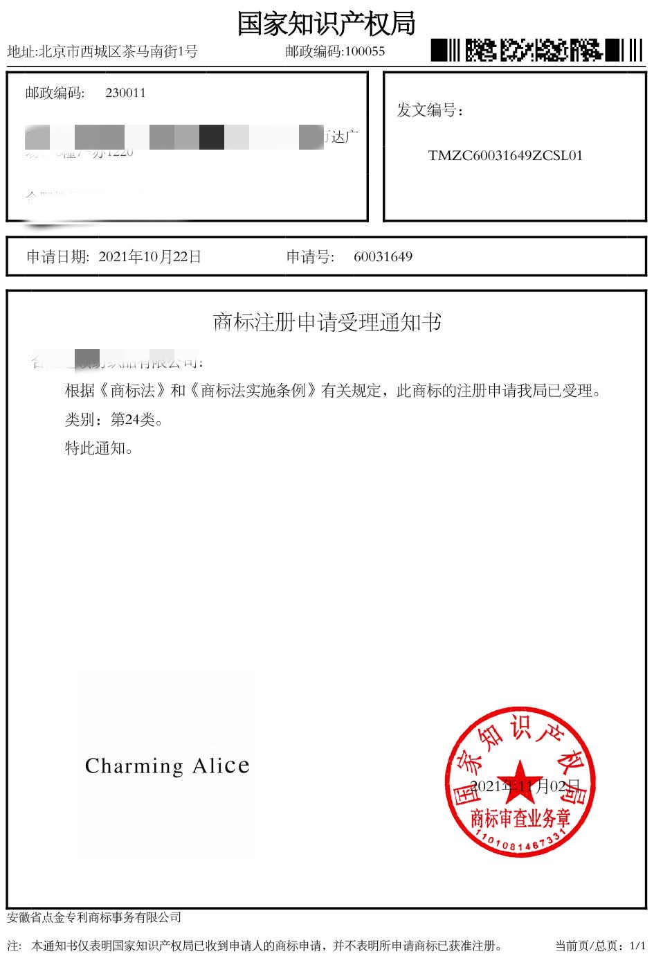 第30类“空魅”商标受理通知书第29类“摩尔庄园”商标受理通...第44类“郑元元”商标受理通知...第35类“路基亚”商标受理通知...第29类“网上儿童乐园”商标受...