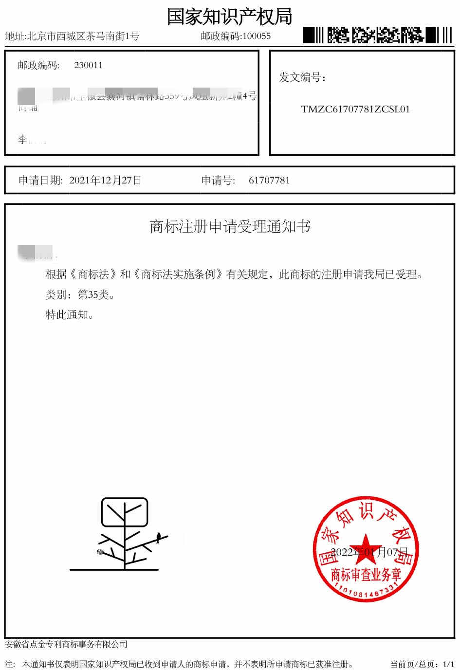 第30类“空魅”商标受理通知书第29类“摩尔庄园”商标受理通...第44类“郑元元”商标受理通知...第35类“路基亚”商标受理通知...第29类“网上儿童乐园”商标受...