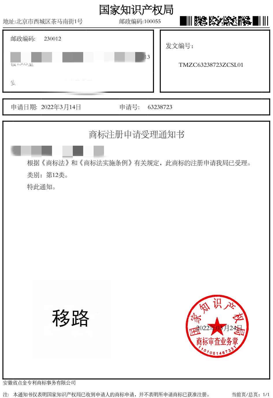 第30类“空魅”商标受理通知书第29类“摩尔庄园”商标受理通...第44类“郑元元”商标受理通知...第35类“路基亚”商标受理通知...第29类“网上儿童乐园”商标受...
