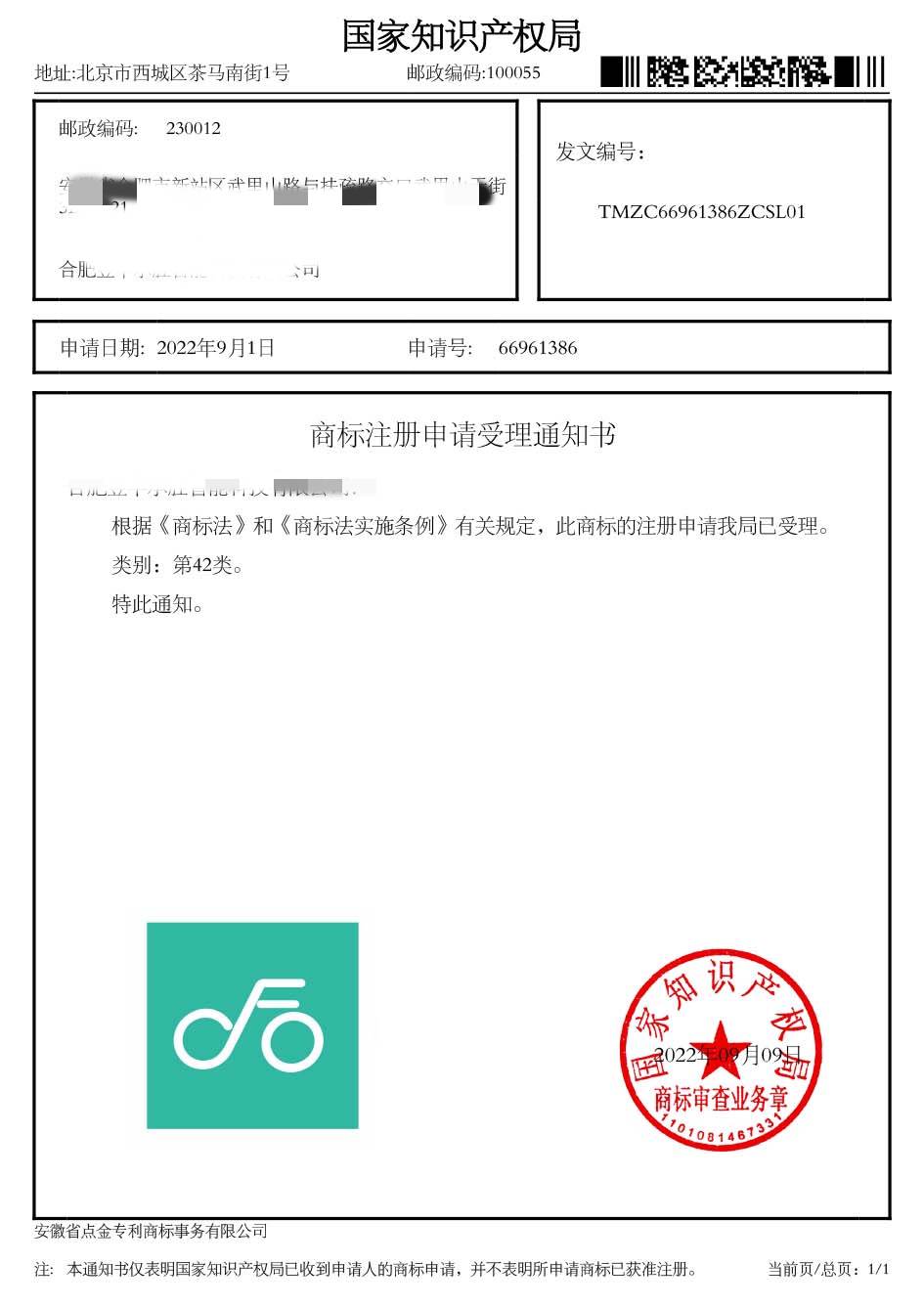 第42类“图形”商标受理通知书